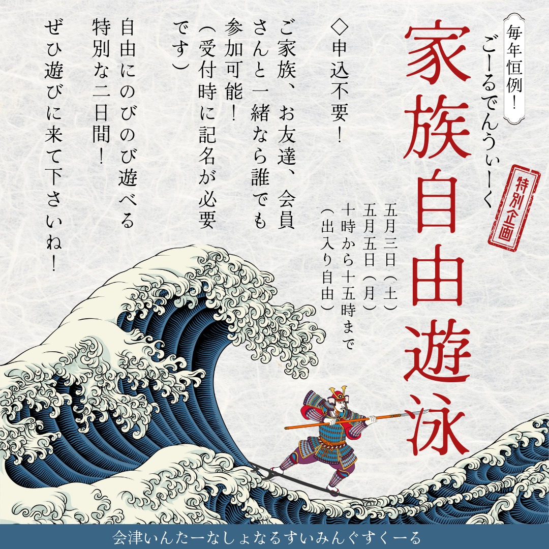 「家族自由遊泳」は、会員さんとそのご家族・お友達も一緒に参加できる2日間限定の特別企画です!